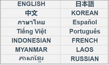 ภาษาที่รองรับ (Supported Languages) ในระบบเล่นเกม UFABET888 มีทั้งหมด 14 ภาษาในปัจจุบัน และภาษาไทยเป็นหลักในเว็บไซต์ ซึ่งระบบภาษาจะไม่เกี่ยวข้องกับค่ายเกมที่ให้บริการ หากเปลี่ยนภาษาจากระบบแล้ว เกมที่เลือกเดิมพันไม่รองรับ ก็จะเป็นภาษาอังกฤษ โดยทั่วไปแล้วสำหรับภาษาไทยจะรองรับแทบทุกเกมบนระบบ.